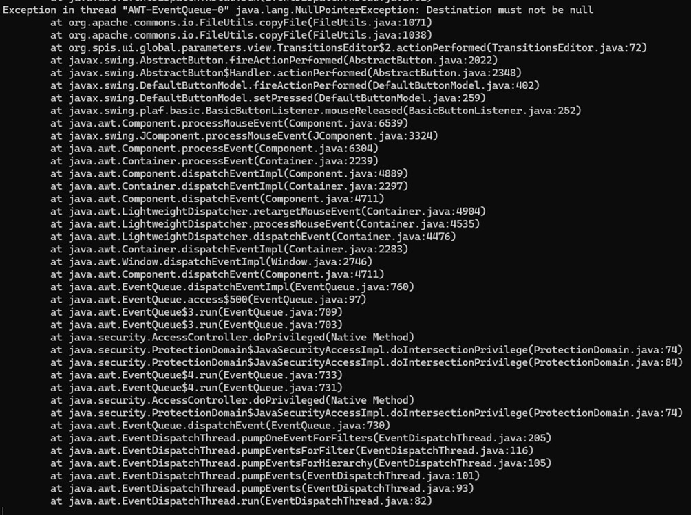 I’m trying to start a simulation with a Spacecraft rotating around one of its axes. However, whenever I try to open the ready-to-use test file SpinningSpacecraft.txt from the transitions folder, I get the following error in the console: